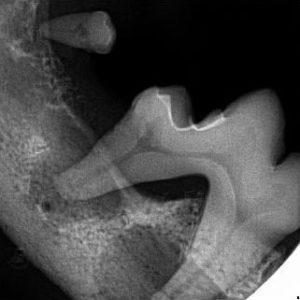 On initial oral examination, Emmies teeth were thickly coated in plaque and tartar (calculus) with one painful, potentially infected tooth. After anesthetic induction and a full oral examination including dental radiograph, more than 25% of her teeth had deep infection including tooth root abscess. Large molars and multiple premolars had tooth root abscess which we did not expect from her daily behavior and awake oral examination.